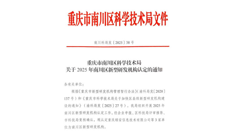 近日(rì),重慶市科學技術局(jú)正式公布2025年區(qū)縣級新型(xíng)研(yán)發機構認定名單,重慶億森動力環境科技(jì)有限公司(以下簡稱“億森動(dòng)力”)憑借完善(shàn)的研發體係、突出的技術創新能力及優異的成果轉化成效,成功獲評“2025年南川區新型研發機(jī)構”。