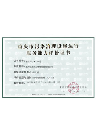 重慶市(shì)汙染治理設施運行(háng)服務能(néng)力評價證書