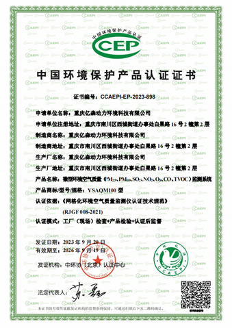 中國環境保護產品認證證書