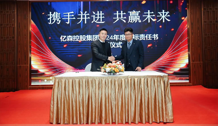 緊接著,大會舉行了2024年度目標責任書簽訂儀式。億森動力管理人員、億森建工各項目經理、集團職能部門負責人與董事長分別簽訂了2024年目標責(zé)任書。這一儀式不僅彰顯了集團(tuán)對未來發展的堅定信心,也激發了全體員工的鬥誌和責任感(gǎn)。大家將攜手並進,共同(tóng)為實現更高的發展目標而努力。